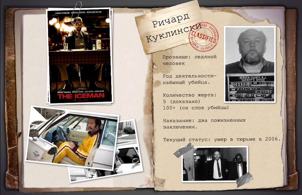 А сам Ричард Куклински, в отличие от всех остальных маньяков в этом списке, убивал не просто так, а потому что ему платили за это деньги. Ну и как вариант, потому что ему это нравилось.