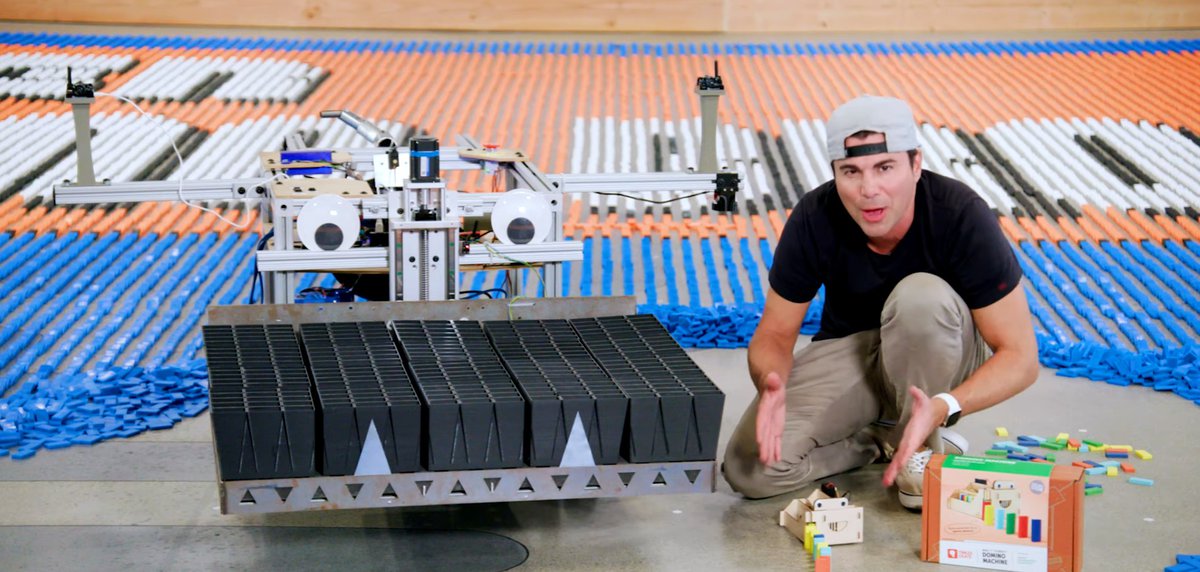 Инженер Марк Робер потратил пять лет на создание робота, способного выкладывать картинки и узоры из костяшек домино. Проект закончен: у Марка получился Доминатор, умеющий создавать большие картины за короткое время.