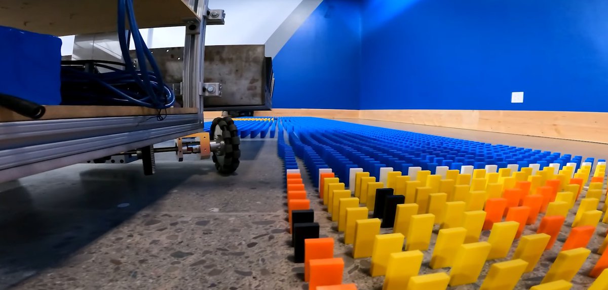 Финальная версия Доминатора работает отлично. За сутки робот может установить больше 100 тысяч костяшек домино; во время теста он собрал домино-версию арта из Super Mario Bros.
