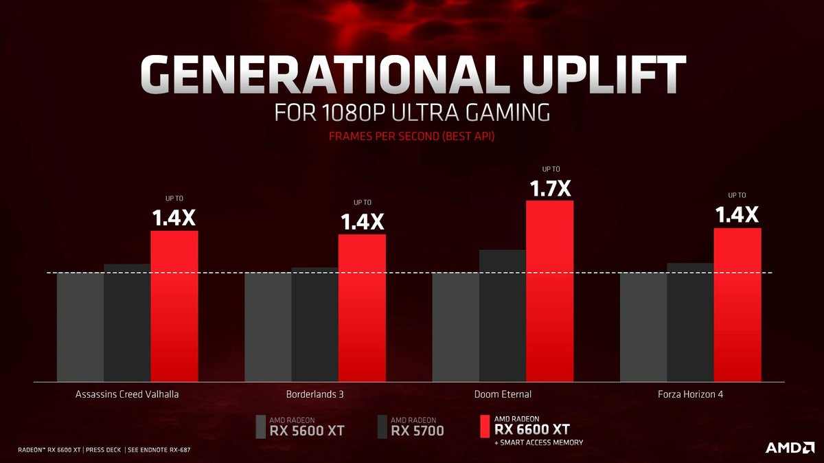По оценке AMD, в разрешении 1080p новая карта немного быстрее GeForce RTX 3060 с включенной технологией Resizable Bar, но без использования трассировки лучей.
