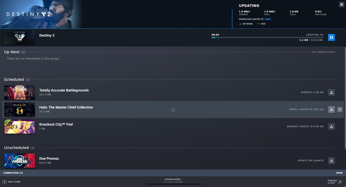 Игра, загружаемая или обновляемая в данный момент, теперь явно отделена от всех остальных проектов в списке. Появилась кнопка, позволяющая очистить всю страницу загрузок.