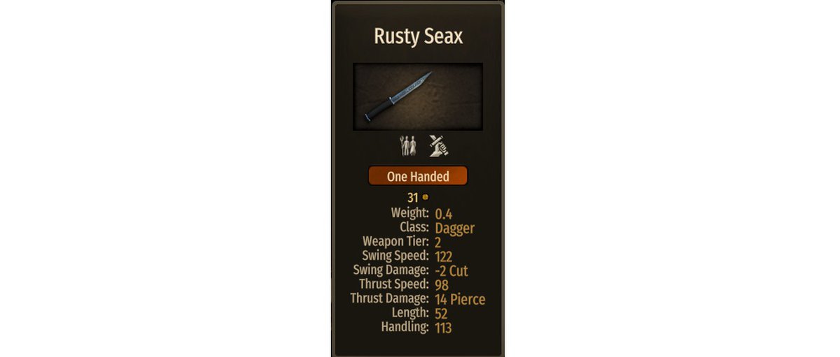 Участник сабреддита Mount & Blade 2 Bannerlord отыскал в игре необычное оружие — «исцеляющий» кинжал. Судя по характеристикам, при ударе кинжал не наносит противнику урон, а восстанавливает немного здоровья.