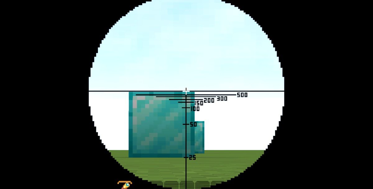 Идея та же, что используется в оптических прицелах. Реддитор создал для подзорной трубы «прицельную сетку», размеченную по нескольким дистанциям: его дальномер поддерживает расстояние от 25 до 500 блоков.