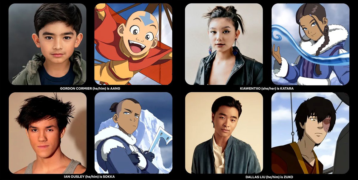 Сервис Netflix работает над игровым сериалом по мотивам мультсериала «Аватар: Легенда об Аанге». Через три года после анонса создатели шоу показали основной актерский состав: исполнителей ролей Аанга, Катары, Сокки и Зуко.