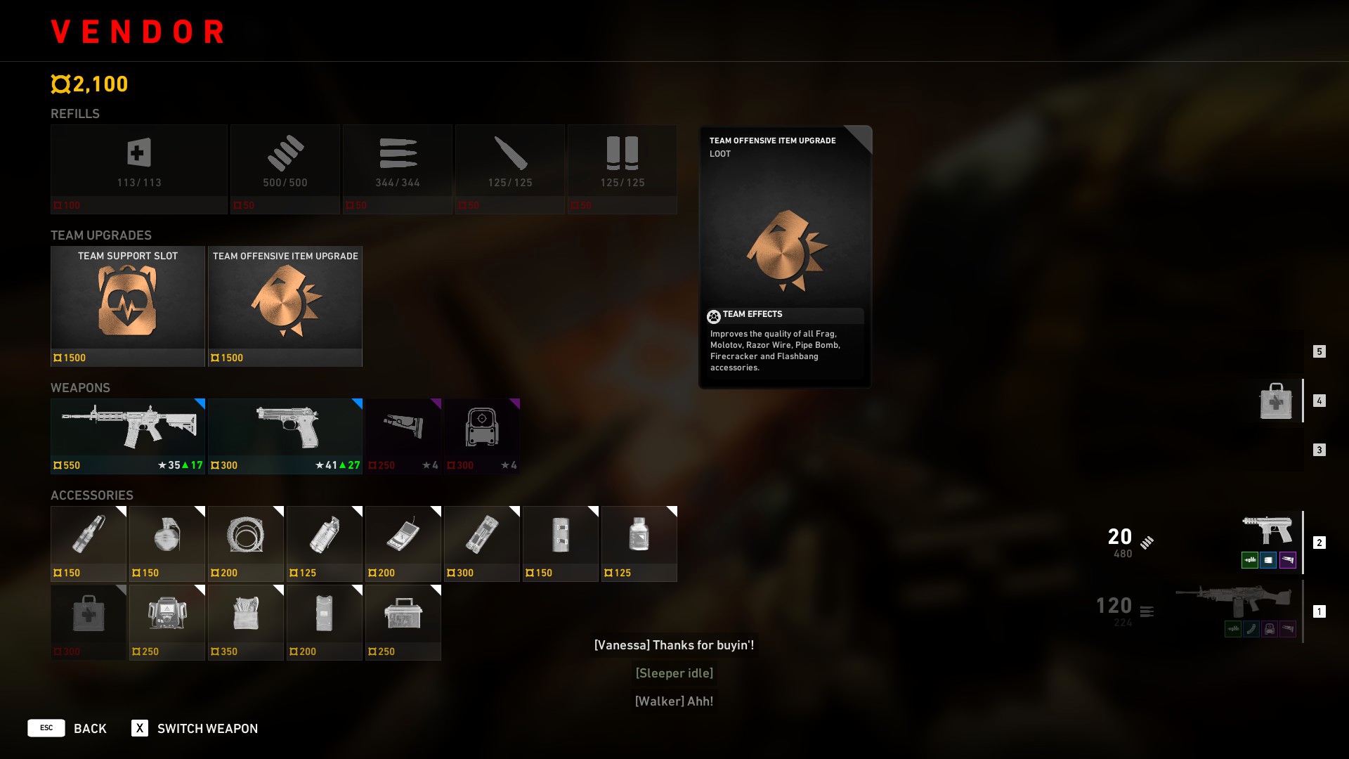 В Turtle Rock Studios, по-видимому, задались тем же вопросом, а посему превратили старые добрые комнаты на старте и финише, в укреплённые хабы, где торговцы могут подкинуть незадачливым игрокам аптечки, оружие, апгрейды, гранаты, а то и командные перки. За разумную сумму, естественно. Проблема, правда, в том, что разработчики в своём стремлении сделать услуги платными немного перестарались. Например, продвинутые аптечки, восстанавливающие максимально допустимый предел здоровья, требуют оплаты, хотя могут находиться посреди заброшенного ангара, заполненного зомби.