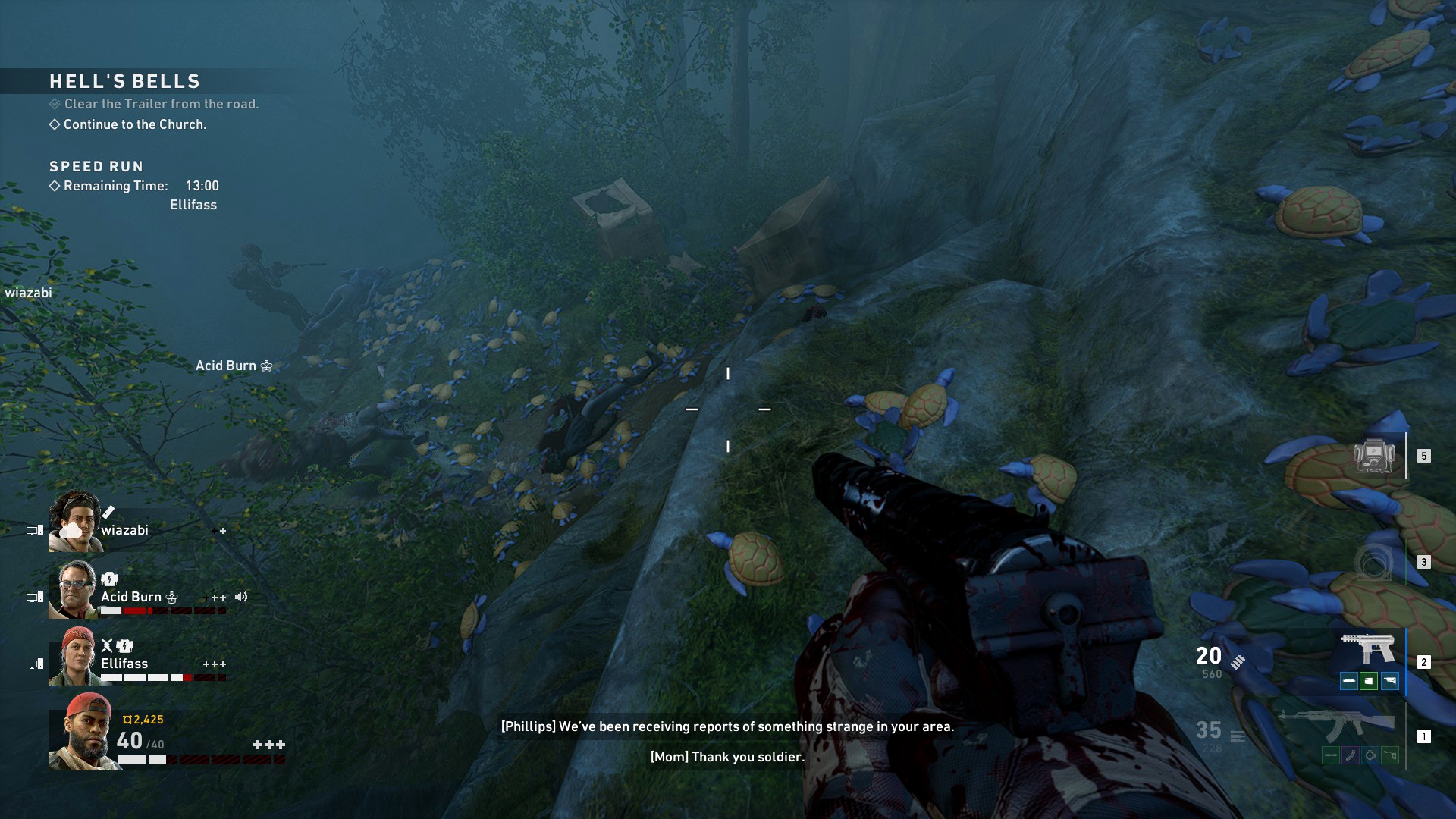 Также я коснулся темы патронов, и не спроста. Теперь каждому игроку имеет смысл ходить с разным оружием, дабы не создавать друг другу конкуренцию в плане аммуниции. Тем не менее, никто вам, опять же, не мешает собрать чужой тип боеприпасов и продолжить путь. Делается это для того, чтобы потом была возможность помочь своим союзникам и в час нужды сбросить им часть неиспользуемых патронов другого калибра.