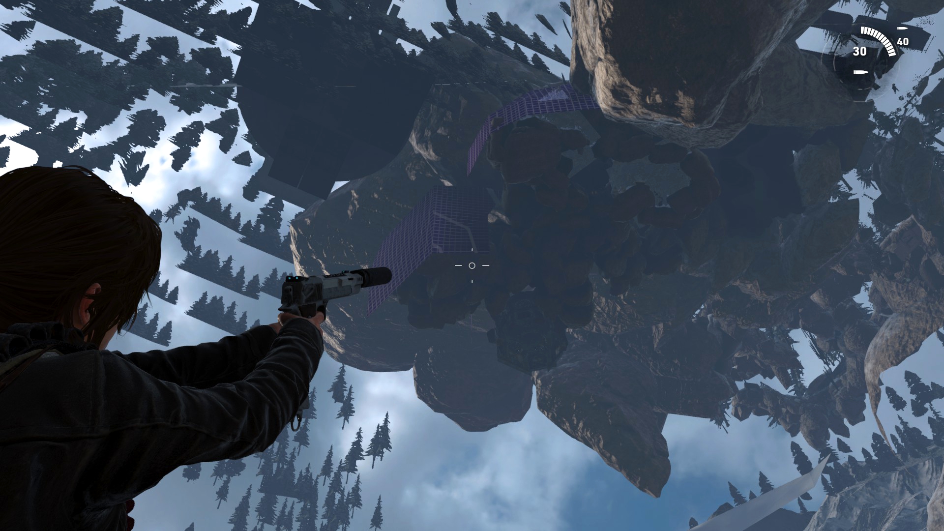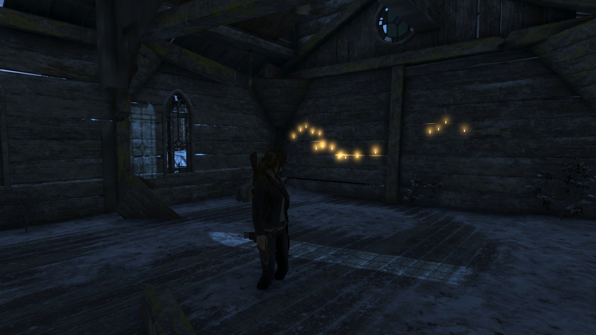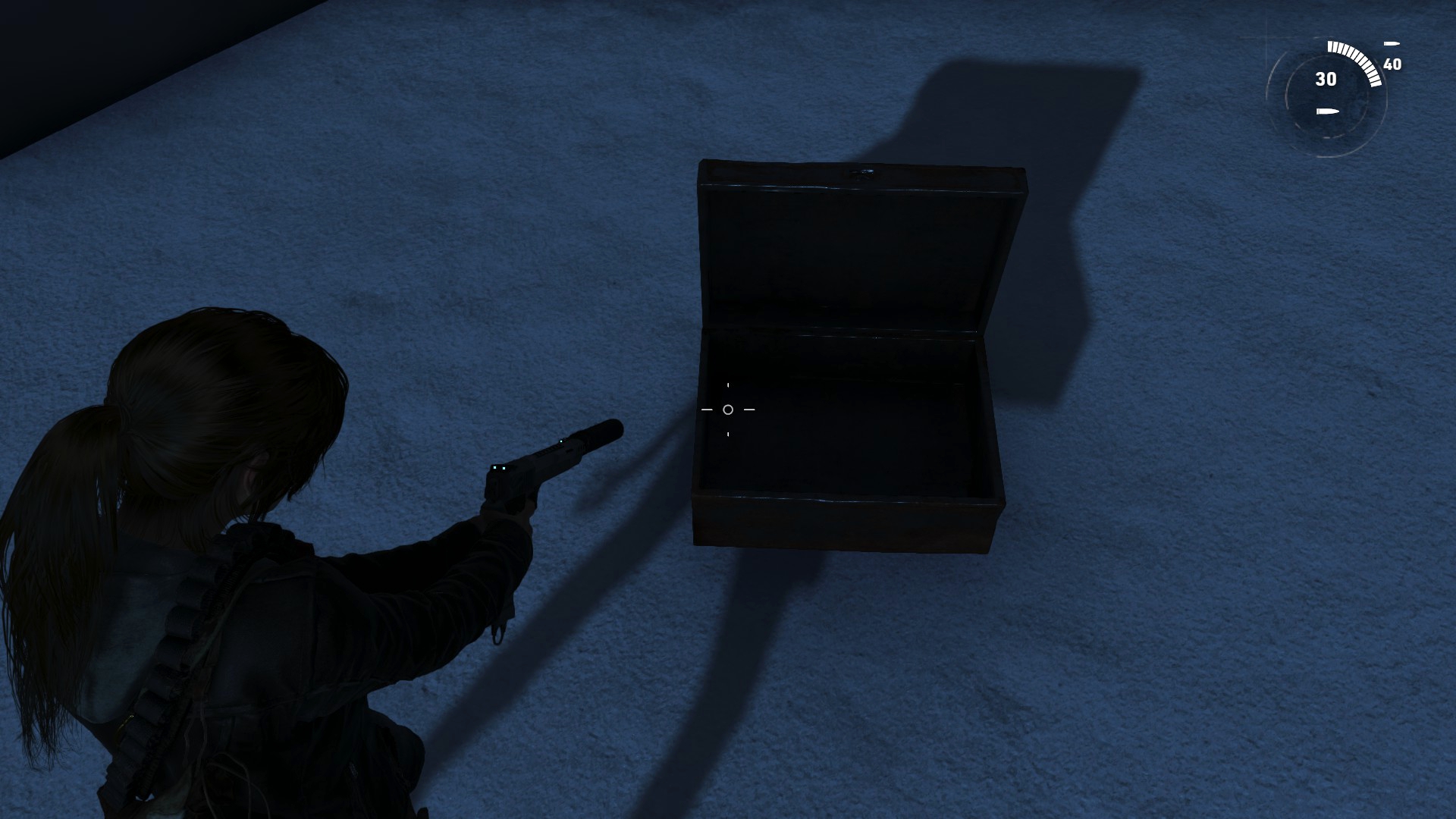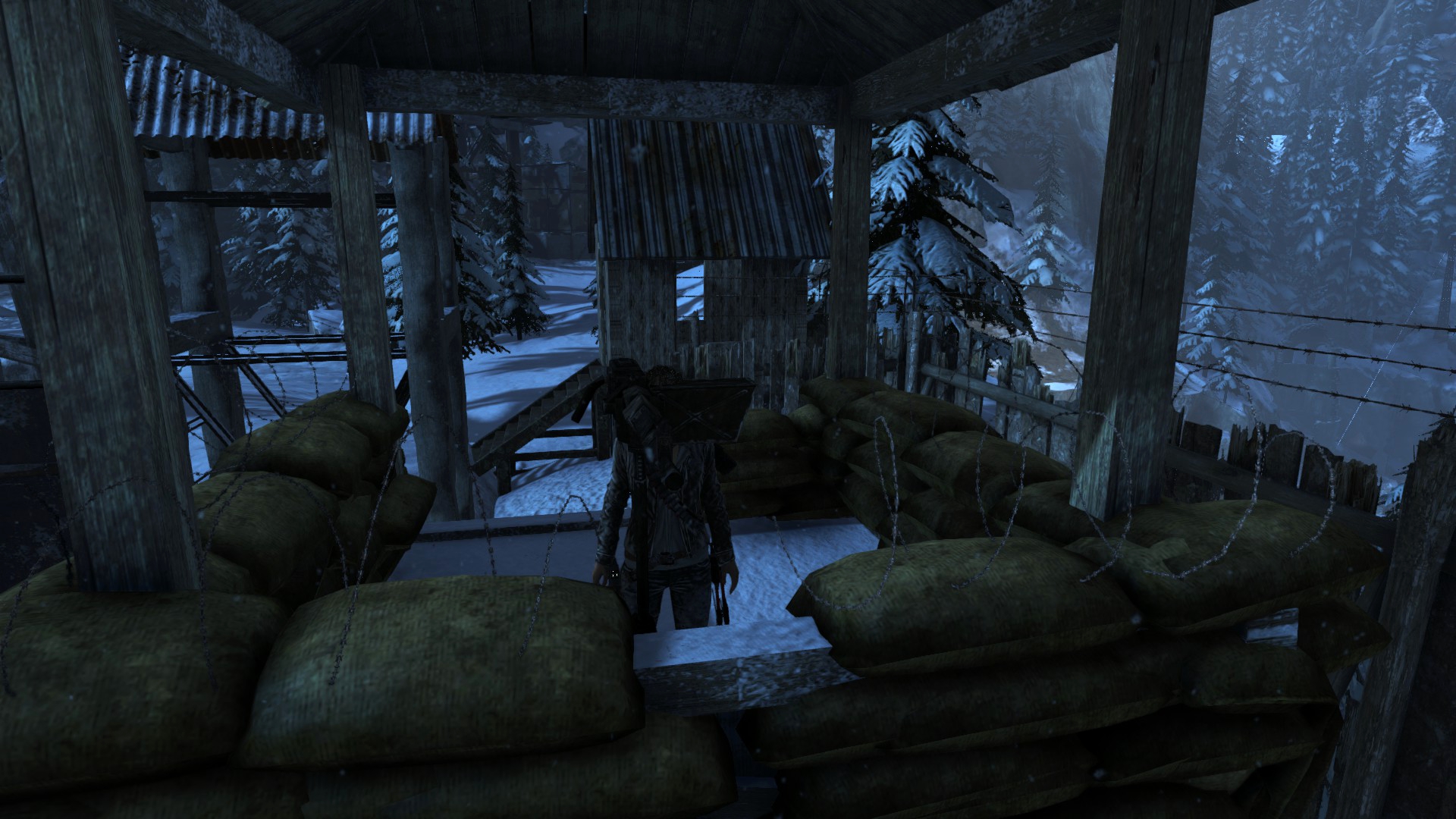 10. Огромное поле с разметкой, при вставании на которую появляется предмет. Не вся разметка работает. На пути автор нашел: пакет еды (хотя в основной игре Лара не нуждается в еде), медикаменты, артефакт, саркофаг, книгу, несгораемый ящик, бочку с огнём, сугроб, ловушку, керосиновую лампу, волка, пенёк, грибы, маслёнку, настенные припасы, умерших животных, припасы, кусты и корзинки с ягодами, деревья, древесину, гнёзда, перья и ящики с припасами.