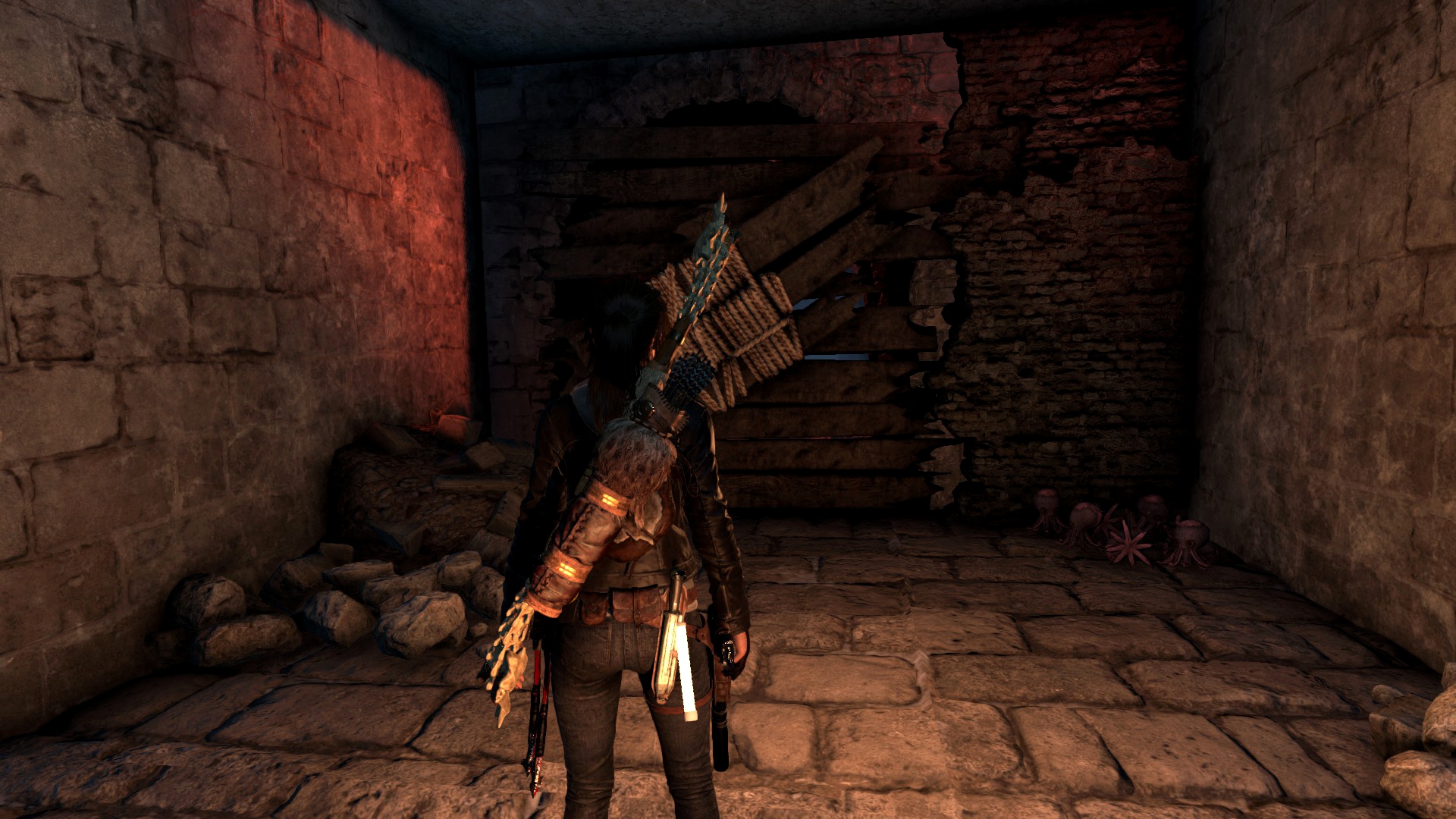 На самом деле локация используется, закрыт только путь, который раньше вёл куда-то. Он завален, но, как оказалось, обломками, которые Лара может разрушить канатом. Вход расположен за локацией и попасть туда можно допрыгнув супер-прыжком до обвала с других зон, которые также незадействованы игрой. Как только Лара расчистит проход и попробует вернуться, локация, с которой можно допрыгнуть до туда – обвалится. К слову, возле прохода лежат игрушки в виде осьминожек, подобные игрушки можно увидеть в первой части перезапуска, на корабле Endurence.