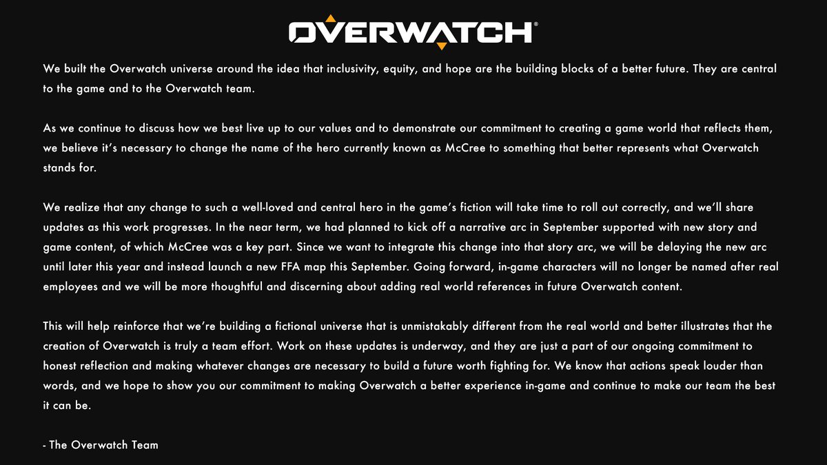 Мы верим, что необходимо изменить имя героя, сейчас известного как Маккри, на нечто, лучше отражающее то, что олицетворяет Overwatch.