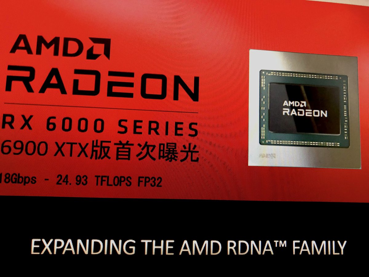 Возможно, корпорация AMD готовит или готовила топовую видеокарту Radeon RX 6900 XTX. Фотографию из слайда презентации видеокарты опубликовал твиттер-аккаунт CyberCatPunk; презентация была подготовлена для китайского рынка.