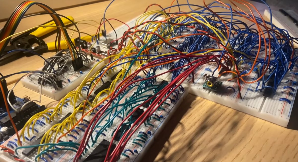 Решив сперва потренироваться, jdh запрограммировал всю необходимую логику на Arduino. Процесс, признает инженер, занял много часов; пришлось поломать голову, но в итоге jdh удалось вывести на экран картинку.