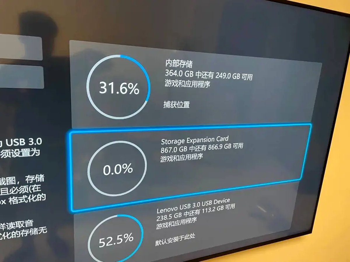 После подключения консоль опознала устройство как обычную карту памяти и предложила использовать 867 гигабайт свободного места.
