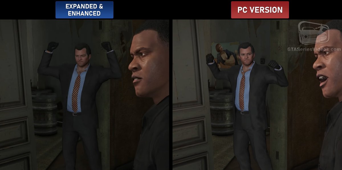 Оказалось, в обновленной версии изменен декор некоторых сюжетных кастцен. Речь не только о новом стуле у Лестера: например, в сцене с Майклом и Франклином со стены исчез постер с легко одетой девушкой.