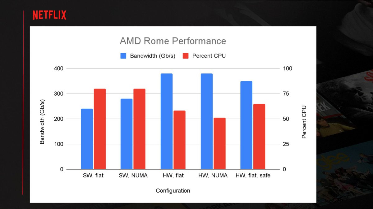 - В основе архитектуры Netflix лежат ноды на базе 32-ядерных процессоров AMD EPYC 7502P, отдающие зашифрованный видеоконтент.