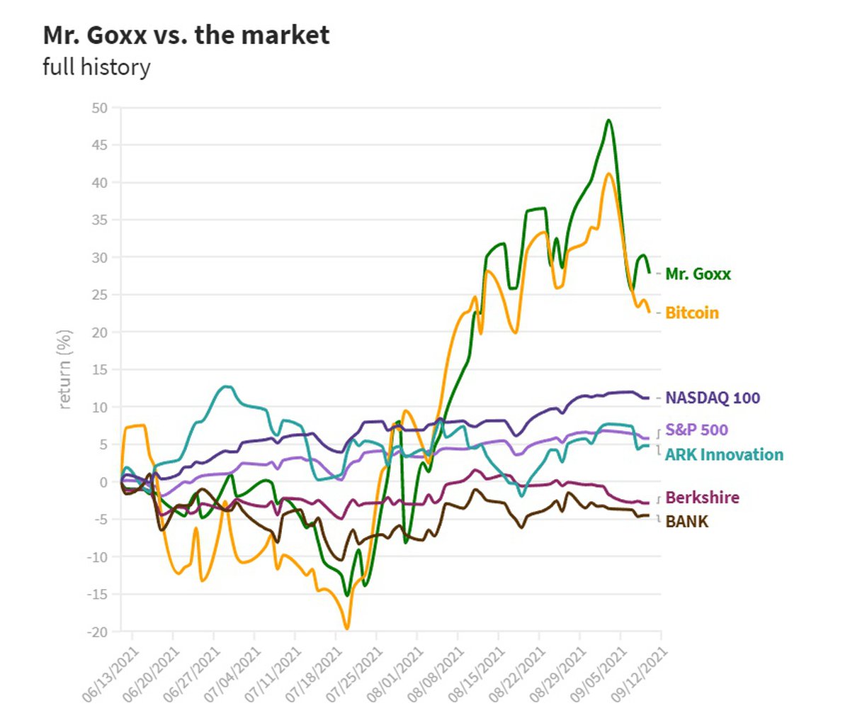 За три месяца, подсчитали в Protos, Мистер Гокс показал неплохие результаты. Его портфель криптовалют за это время подорожал почти на 30% и сейчас оценивается приблизительно в $498. Стартовал Мистер Гокс с $390.