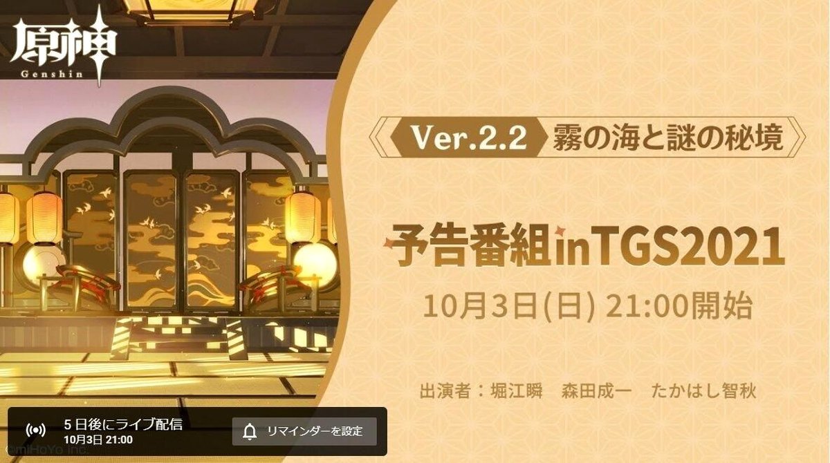 Студия miHoYo примет участие в выставке Tokyo Game Show. В рамках выставки, в этом году проводящейся онлайн, разработчики покажут следующее обновление для Genshin Impact — патч 2.2.