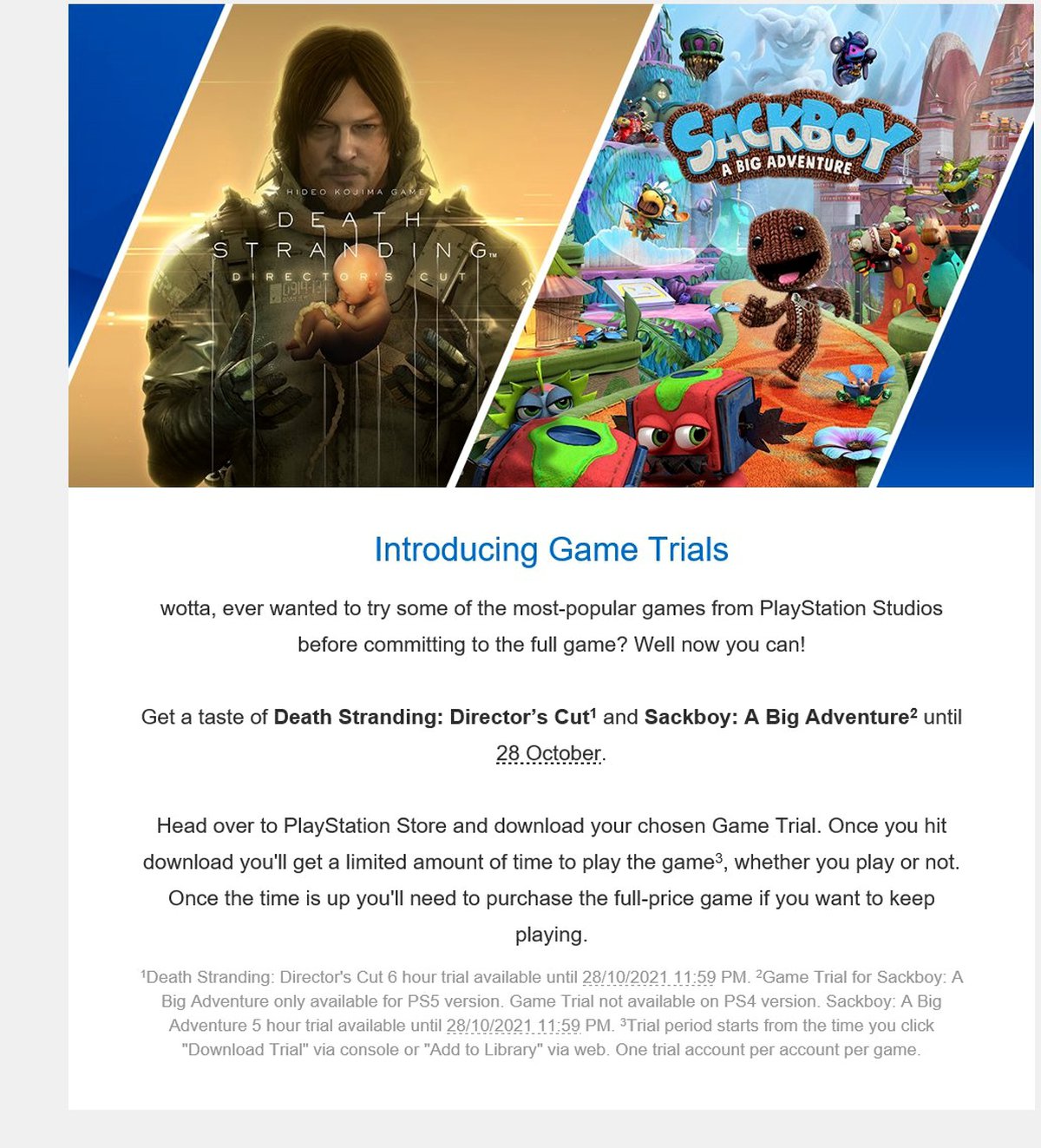 В магазине PlayStation Store начали появляться пробные версии игр для PlayStation 5. Сейчас игрокам в некоторых регионах доступны пробные версии Death Stranding: Director Cut и Sackboy: A Big Adventure.