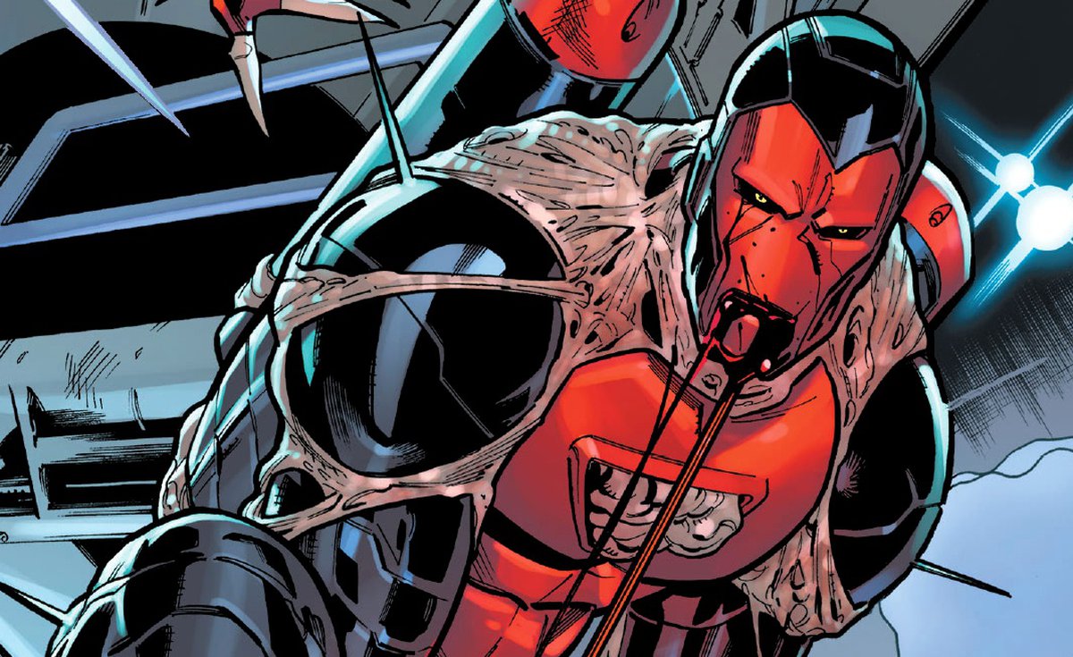 После воздействия Даркхолда плоть Тони Старка, видимо, чудовищно разрослась: теперь она выступает практически из всех отверстий брони. Мы пока точно не знаем, как это отразилось на его боевых возможностях — трансформация произошла на последних страницах номера.