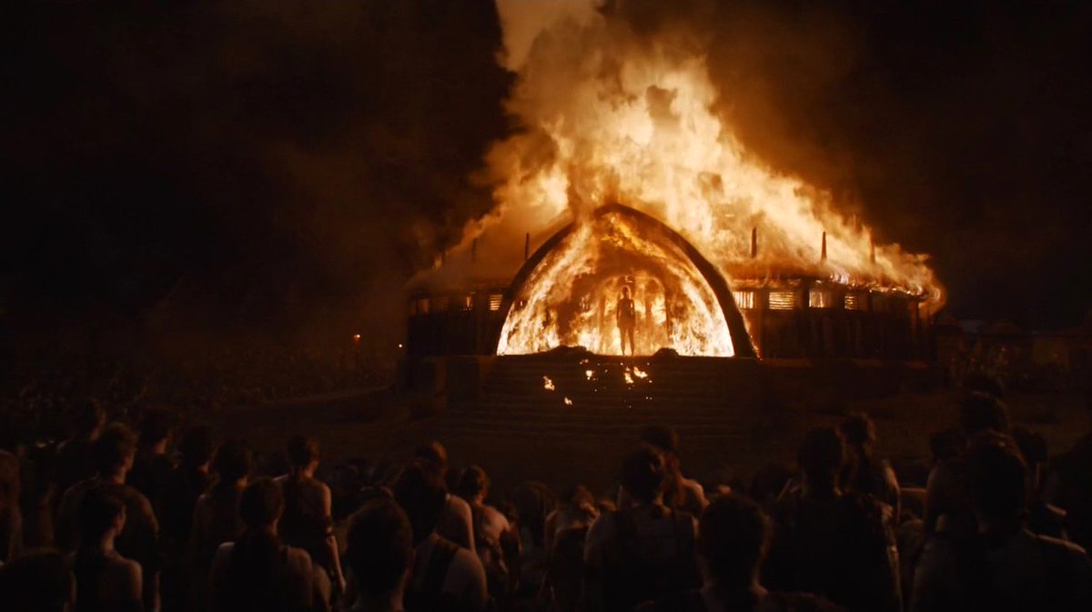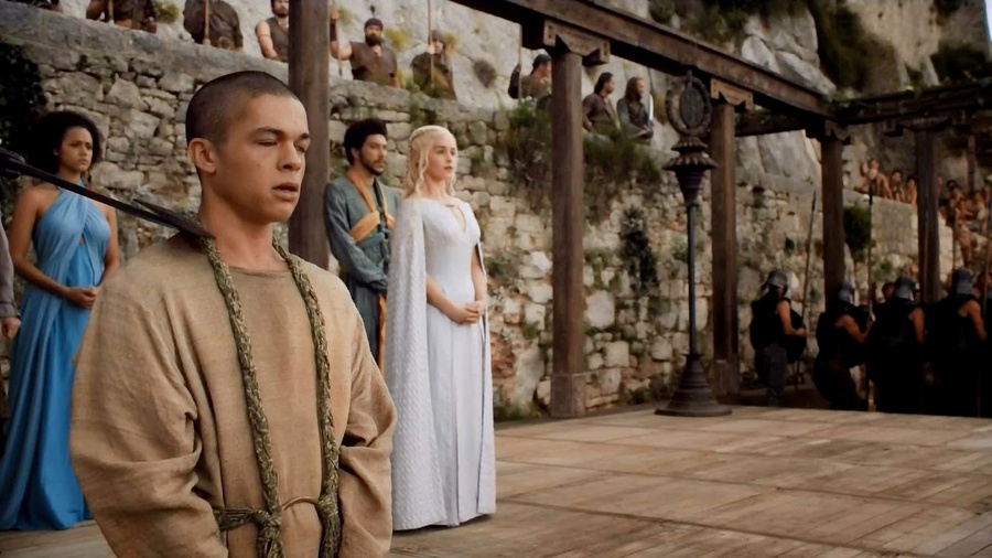 Тирион верно заметил, что раньше Дейнерис прибегала к сожжению людей заживо или распятию, но все они были не без греха: дотракийцы, рабовладельцы, знать, — все они измывались над невинными, которых Дейнерис спасала и освобождала. Её возвеличивали, прозвали матерью, освободительницей оков. На какой-то момент она вовсе отложила цель завоевать Железный Трон и решила остаться в Миэрине, чтобы разрешить там и в соседних завоёваных государствах все проблемы.