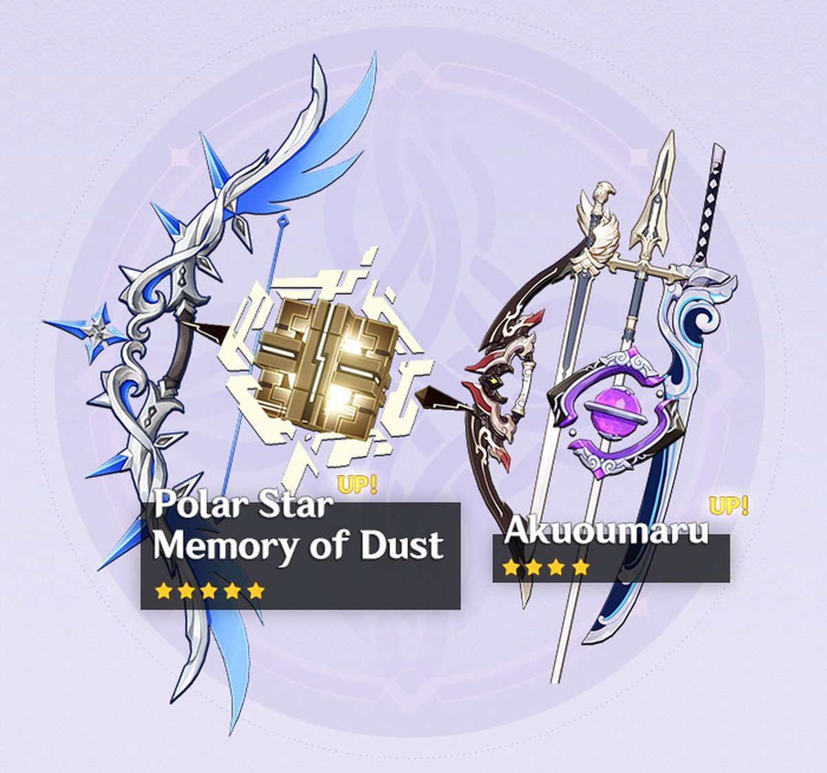 Появится новое оружие. Его, как обычно, четыре единицы: лук Полярная звезда (5 звезд), двуручное оружие Акуомару (4 звезды), древковое оружие Режущий волны (4 звезды) и лук Луна Моун (4 звезды).