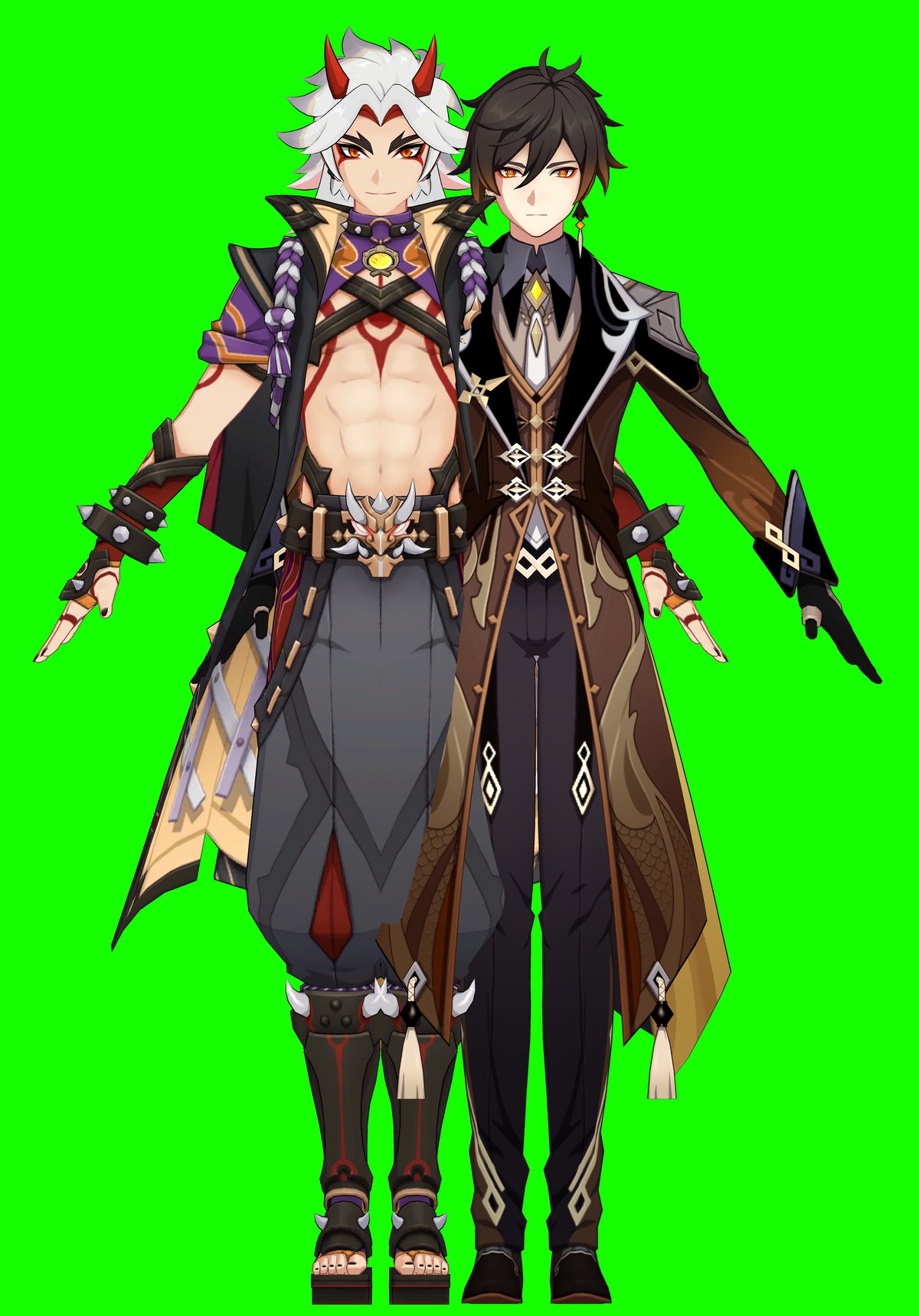 Насчет роста Итто информации пока нет, но по сравнению моделей видно — он заметно выше Чжун Ли, вместе с Кэйа и Чайльдом считающегося самым высоким персонажем Genshin Impact.
