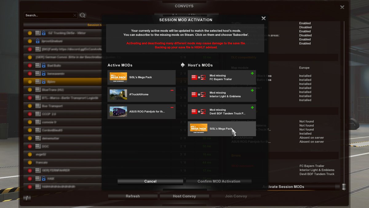 В мультиплеере Euro Truck Simulator 2 и ATS появилась поддержка модов
