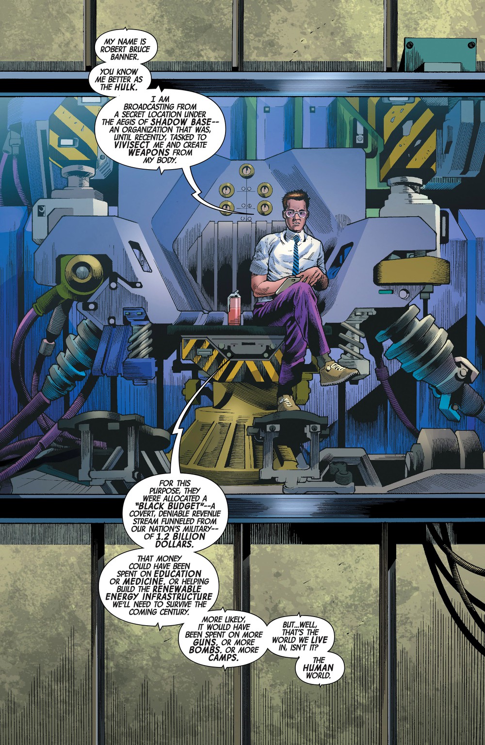 Помотало зелёного здоровяка за последние года довольно сильно. В частности, ему пришлось умереть и воскреснуть, причём обставлено всё было довольно нелогично. В новом томе Элу Юингу необходимо было как-то объяснить произошедшее, и вот что он придумал - Баннер умереть может, а Халк бессмертен.