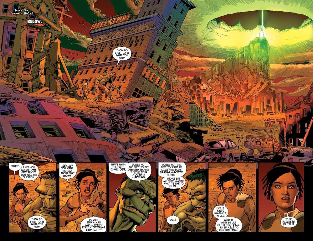 В рамках чистой супергероики такое может показаться бредом. Но данный комикс имеет элементы мистического триллера. Альтер эго Брюса - это не тот Халк, умеющий только крушить, которого мы привыкли видеть.