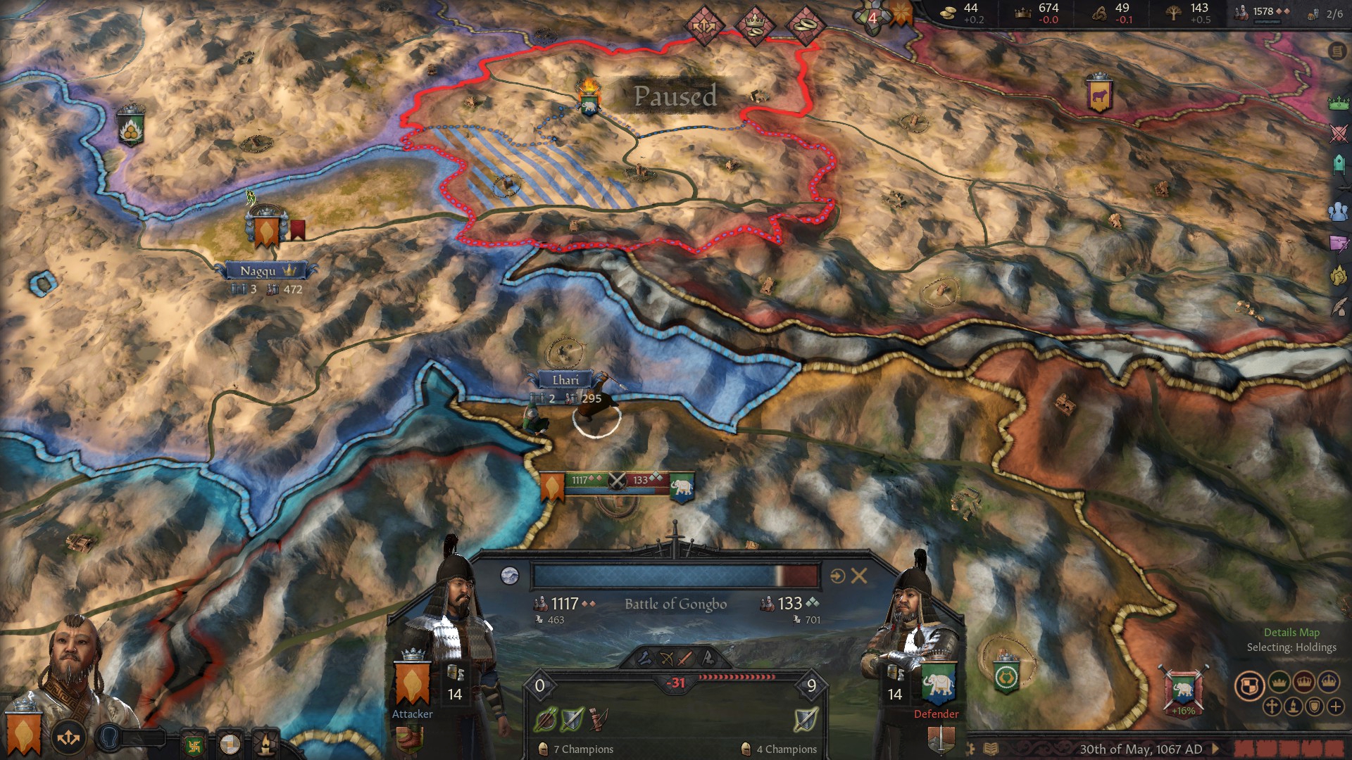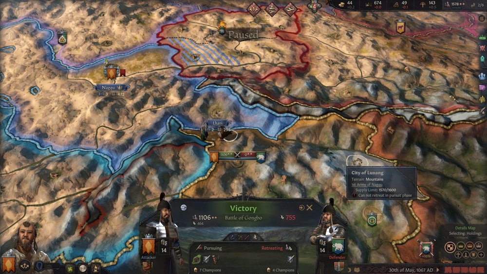 Место проведения битвы тоже переносится и превращается в декорации. Если в Crusader Kings 3 одни юниты были более эффективны в лесу или степи, то здесь это заметно не будет. Всё решают ваши руки.