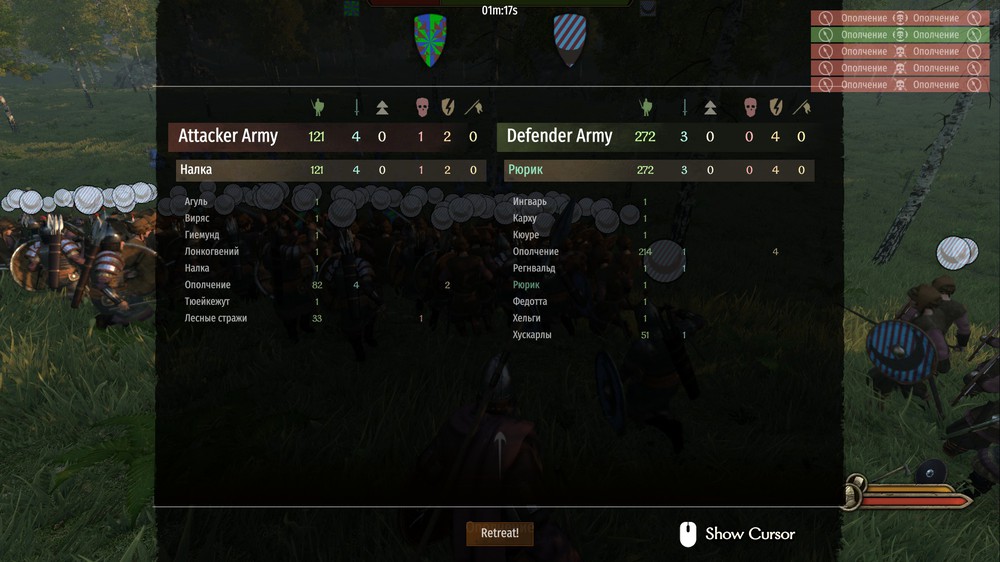 Играть предстоит за командира, это может быть как основной персонаж, так и маршал из сессии Крестов. Каким образом выбирается его вооружение, наличие лошади я не понял. Бывало, один воевода в первый бой заходит пешим, во второй всадником.