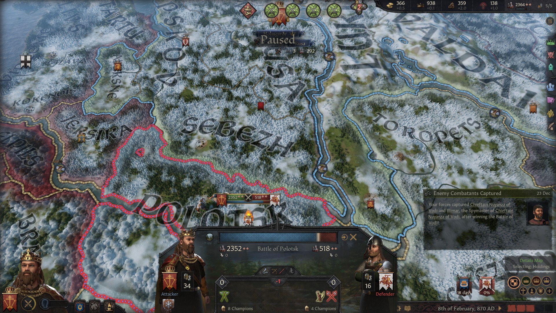 Хочется отметить некоторую странность. Каждый раз, когда я завершал столкновение в Bannerlord победой, анимация в Crusader Kings почему-то показывала, что моего полководца избивают, хотя победа при этом отображалось.