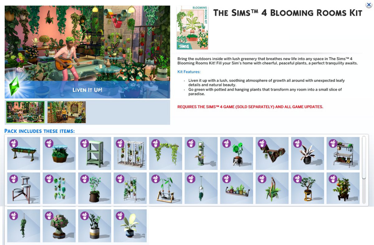 9 ноября для The Sims 4 выйдет комплект Blooming Rooms, «Цветущие комнаты». Фанатам удалось получить детальное описание комплекта, включая изображения всех входящих в него предметов.