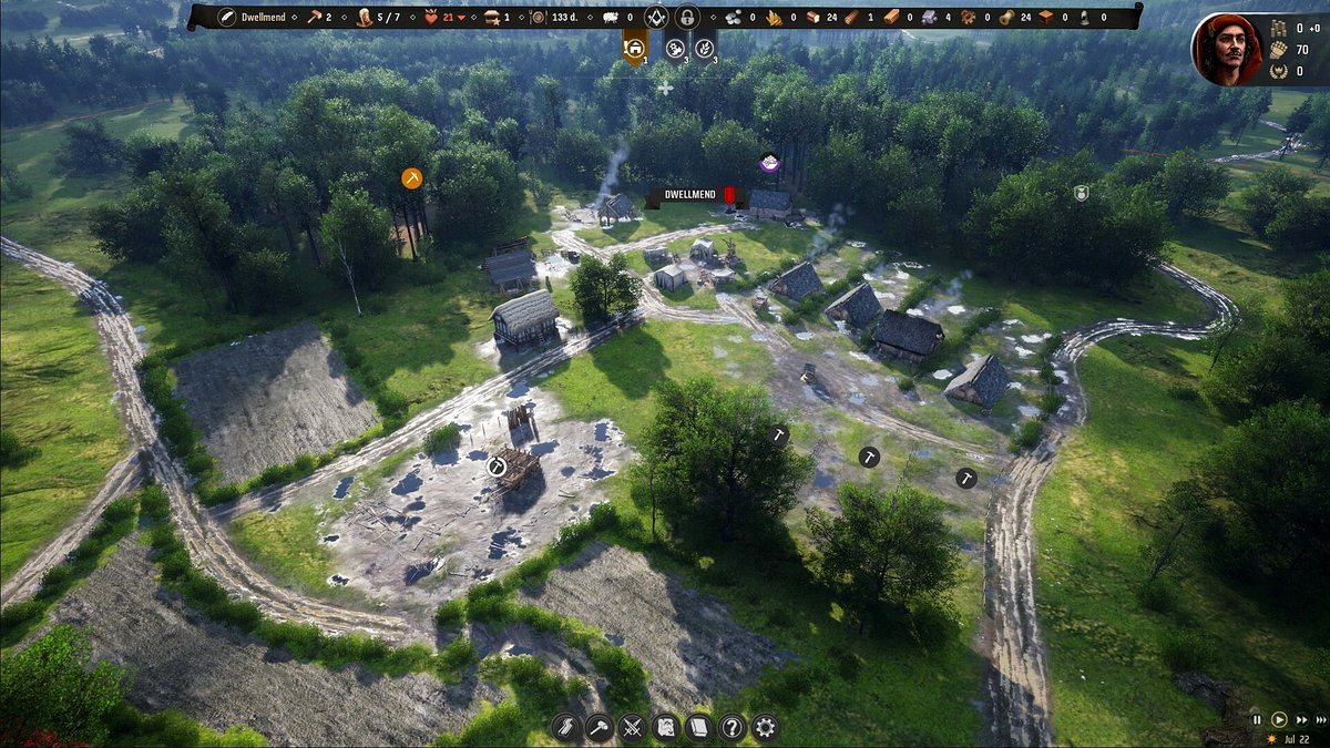 - Есть ранняя версия системы законов или политик. Например, можно уменьшить потребление продуктов в регионе в обмен на снижение лояльности. Или повысить частоту респауна диких животных, потеряв часть посевов.