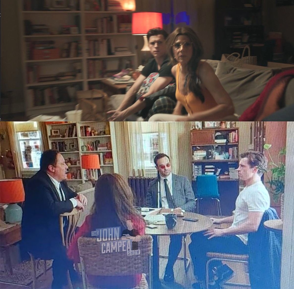 Кадр, считают фанаты, аутентичен, а события сцены происходят дома у Питера Паркера. Эту же комнату можно увидеть в трейлере «Нет пути домой»; время суток другое, но интерьер узнаваем.