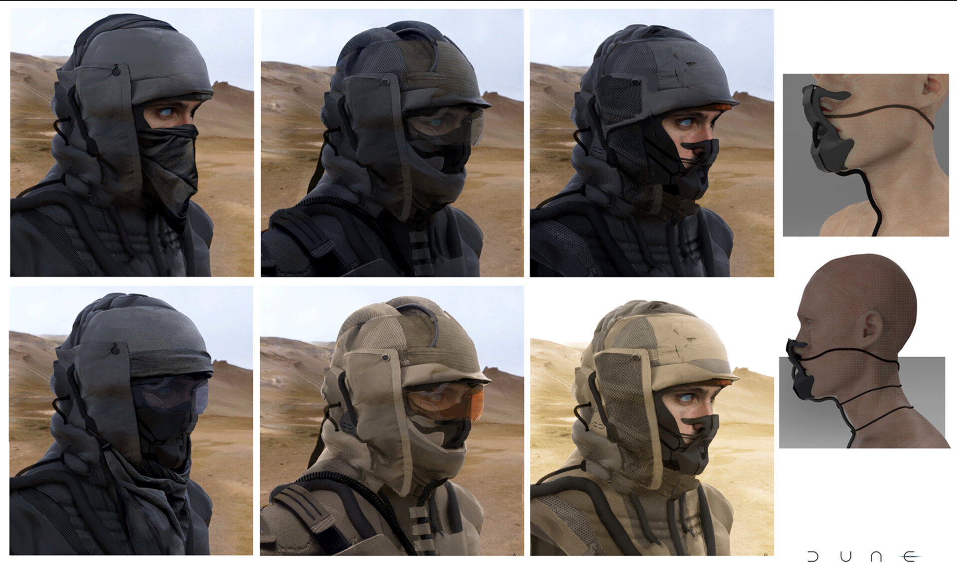 На этой стороне выступает и логика. Так как стилсьюты - это костюмы первой необходимости в условиях жестокой планеты, они должны защищать не только от солнца, но и от других опасностей. Жаклин, зная, что сцены на Арракисе будут сниматься в Иордании, попросила привезти оттуда несколько экземпляров песка и парочку камней.