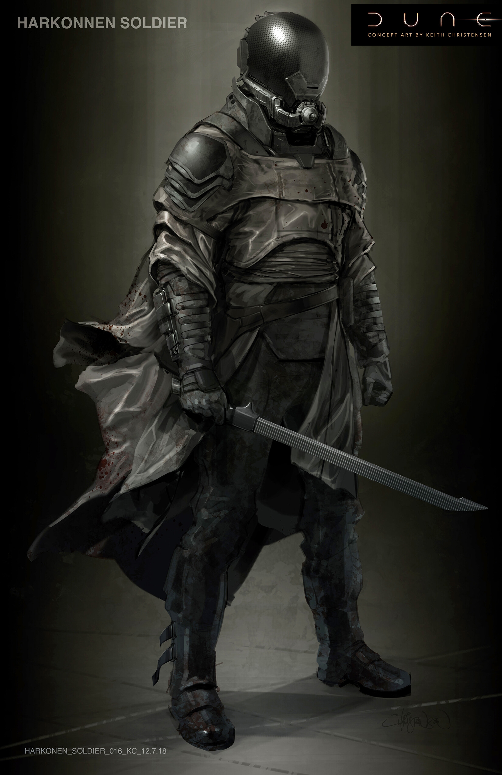 На создание костюмов из текстурной, чёрной кожи для Харконненов повлияли средневековые рисунки различных насекомых. В частности, это были пауки, муравьи, богомолы и ящерицы. На это намекал и сам Фрэнк Герберт. Ведь мать Барона Харконнена не только сравнивали с пауком, но и называли «Чёрной Вдовой». А вот шлемы солдат своей красотой обязаны головам муравьёв.
