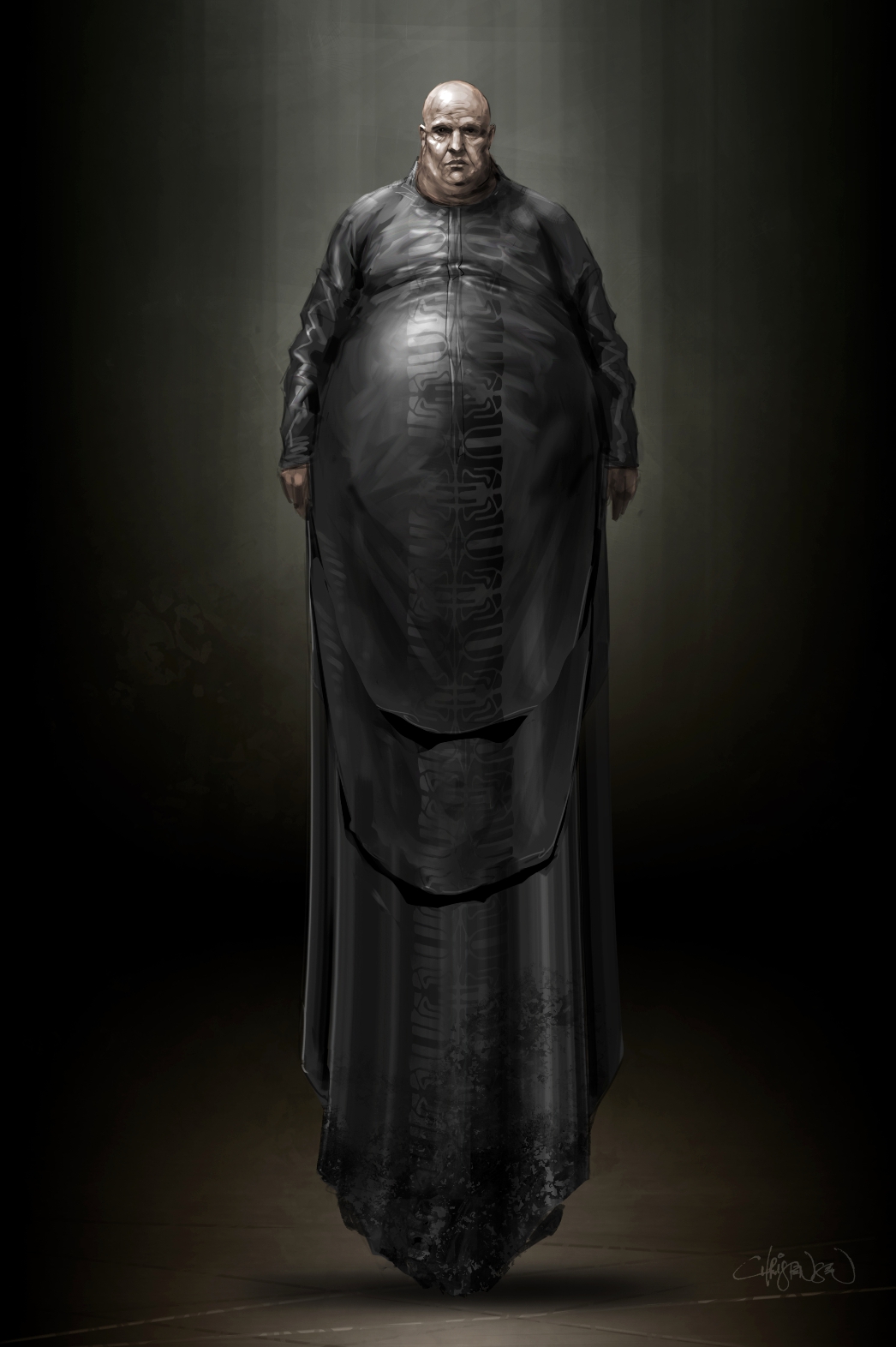 По книге Владимир Харконнен - это тучный 180-ти килограммовый мужчина, который может передвигаться только при помощи специальных суспензоров. Потому что да, такой вес на своих двоих он носить не может. Вильнёв хотел, чтобы Барон выглядел устрашающим и сильным, никак не беспомощным. Стартовой точкой для его образа послужил Марлон Брандо из фильма «Апокалипсис сегодня» (1979). И тогда дизайнеры создали длинную, почти прозрачную мантию из чёрного шёлка.