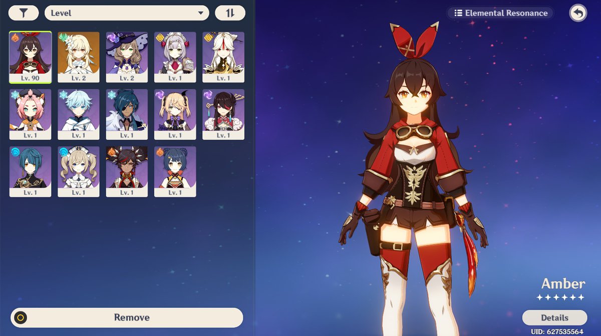 Основным персонажем реддитора стала Эмбер, пиро-лучница с четырьмя звездами редкости. Еще пара героев была прокачана до второго уровня, остальные доступные персонажи так и не поднялись выше первого уровня.