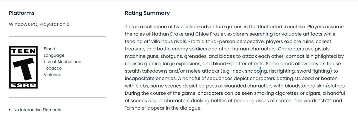 Сборник игр Uncharted для PC и PlayStation 5 получил возрастной рейтинг