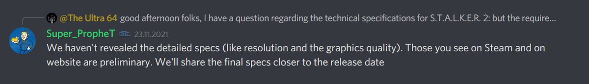 В разговоре с фанатами на Discord-сервере S.T.A.L.K.E.R. 2 разработчики поясняют: системные требования пока предварительные.