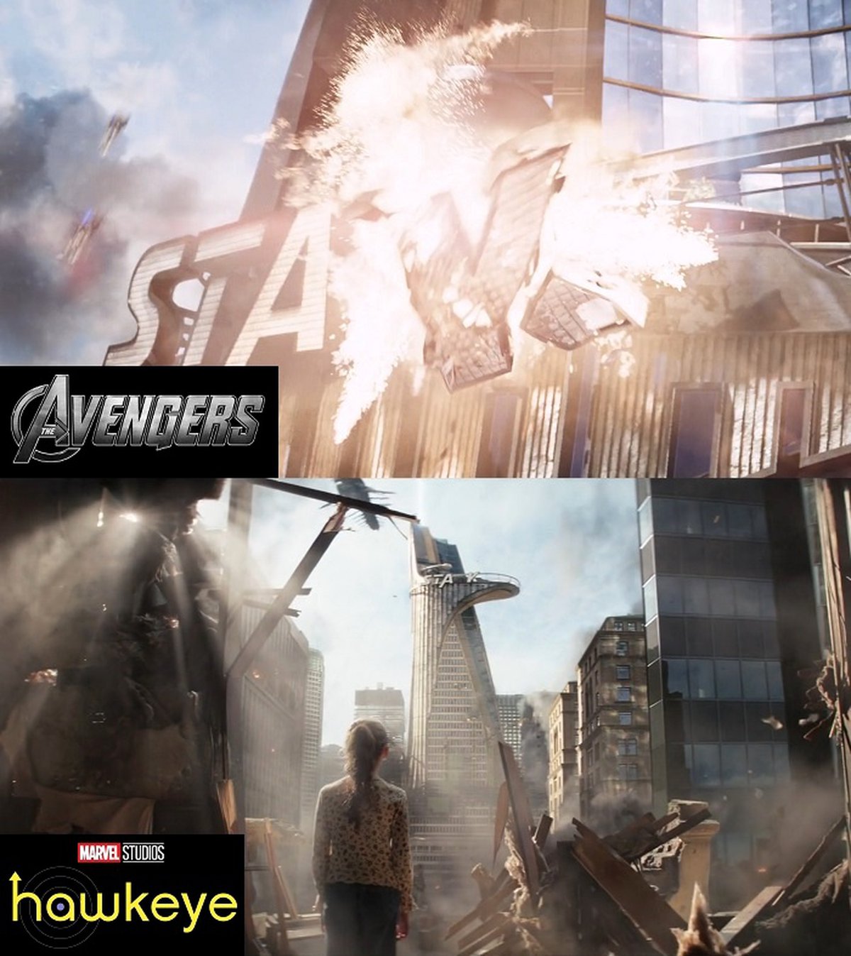 Реддитор Tajul92 обратил внимание, что в «Соколином Глазе» на башне остаются три буквы: S, T, A и K. Между тем в первой части «Мстителей» отчетливо показывают, как от башни отваливается именно буква K.