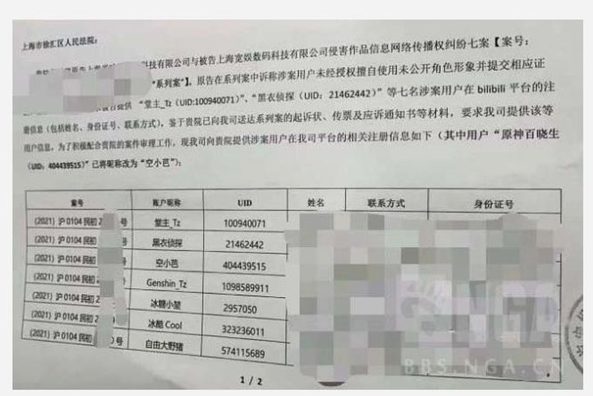 О подаче иска сообщил инсайдерский твиттер-аккаунт Tangzhu_Tz, опубликовавший фотографию одного из документов. Это перечень пользователей видеохостинга Bilibili, к которым miHoYo выдвинула претензии.