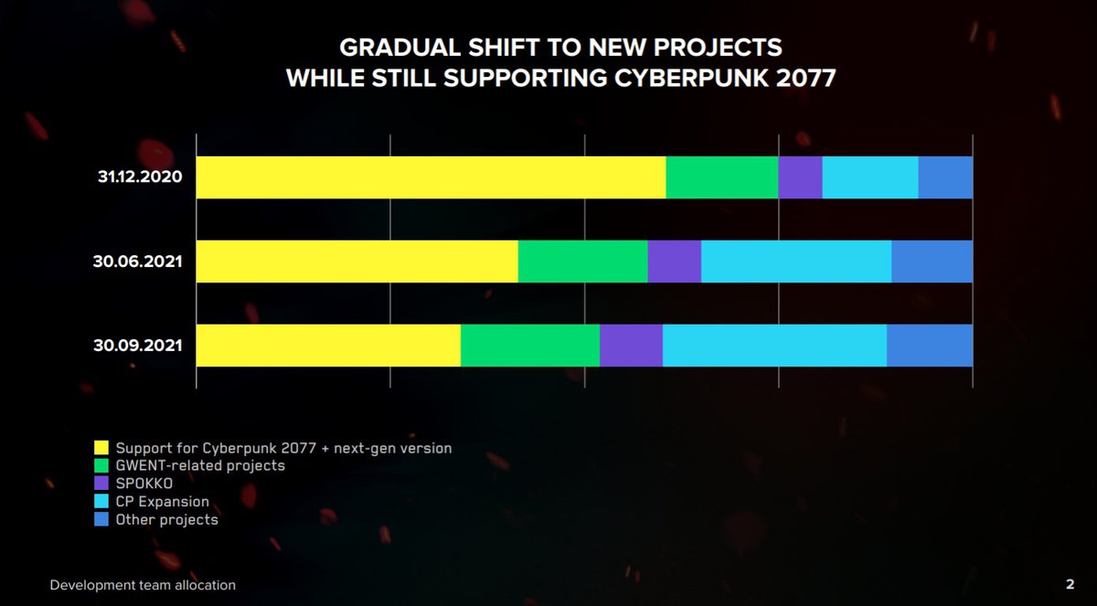 - Сотрудники активно переходят на разработку дополнения для Cyberpunk 2077 и новых игр.