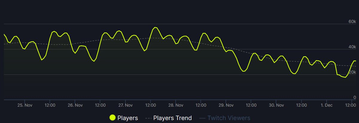 В последние дни, следует из данных SteamDB, пиковый онлайн в Battlefield 2042 не поднимался выше 33-34 тысяч игроков. Всего неделю назад он мог превышать 50 тысяч человек, иногда достигая 53-54 тысяч.