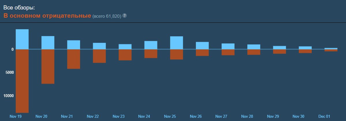Сейчас Battlefield 2042 положительно оценивают 35% владельцев копий для Steam. Начиная с 25 ноября игра регулярно получает больше положительных отзывов за день, чем отрицательных.