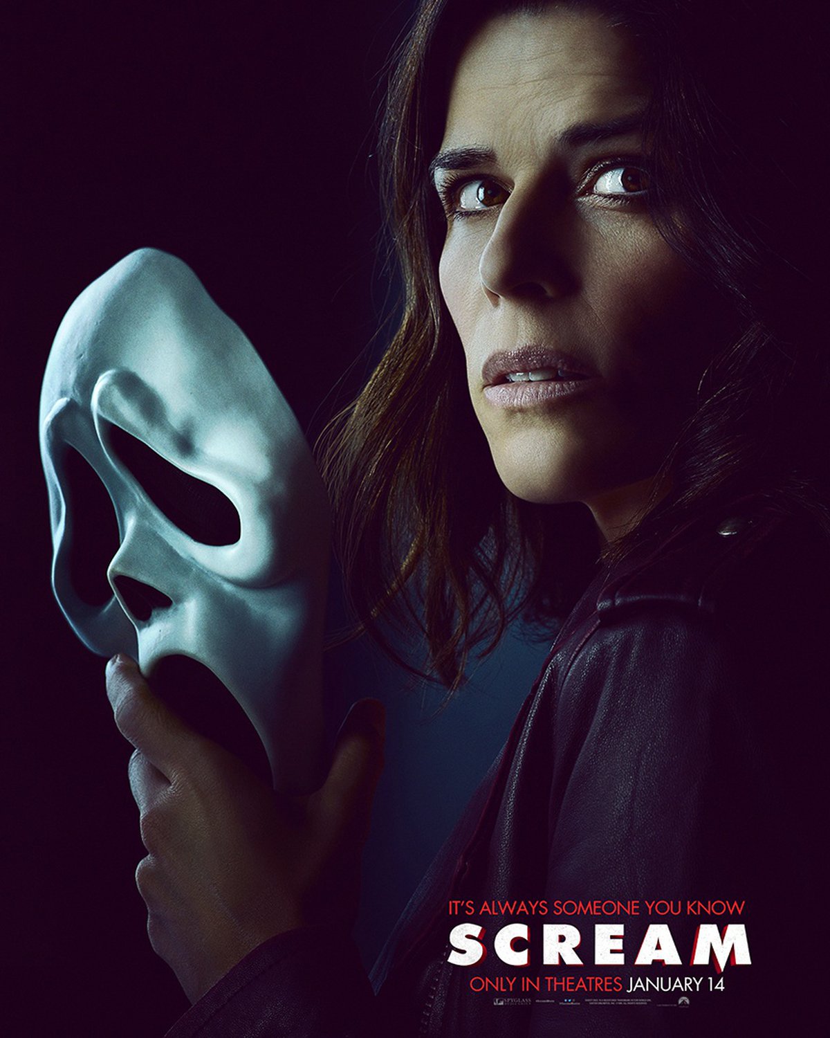 Создатели нового «Крика» опубликовали постеры, посвященные трем постоянным героям франшизы: Сидни Прескотт, Дуайту Райли и Гейл Уэзерс. Каждый постер получил подпись, видимо, указывающую на занятие героев.