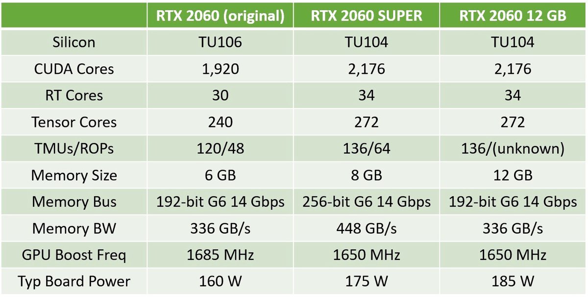 Энергопотребление новой GeForce RTX 2060 окажется чуть выше, чем у RTX 2060 Super. О стоимости видеокарты информации нет.