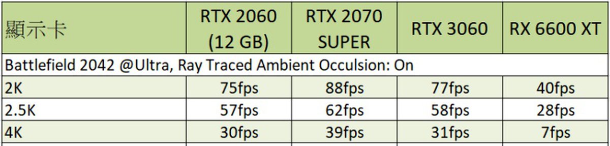 В некоторых случаях новая карта оказалась очень близка к GeForce RTX 3060. Например, в Battlefield 2042 обе карты показывают почти идентичную частоту кадров вне зависимости от разрешения.