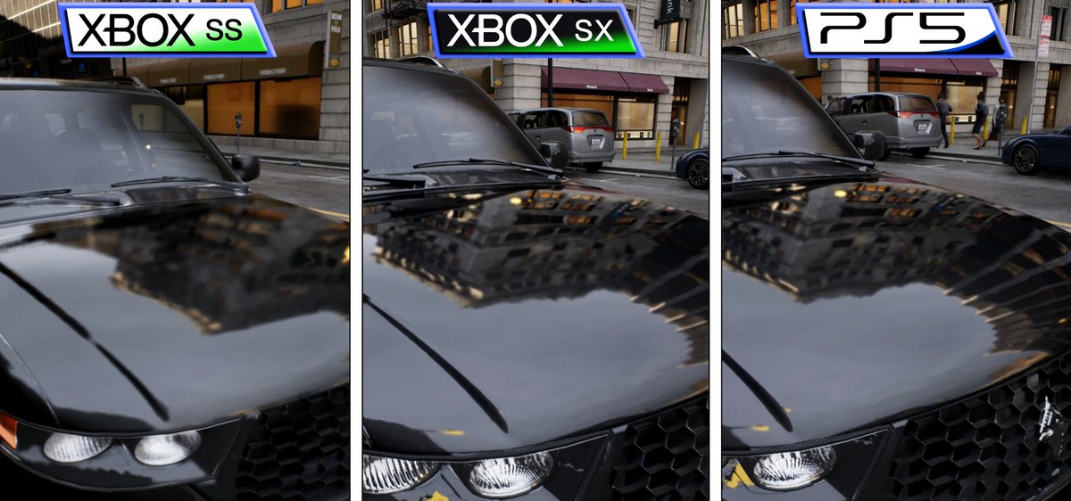 Качество эффектов на Series S немного хуже: более низкое разрешение теней и отражений, менее качественное глобальное освещение, слегка уменьшенная дальность отрисовки. Series S отрисовывает меньше полигонов на экране, зато на ней демка чуть-чуть быстрее грузится.