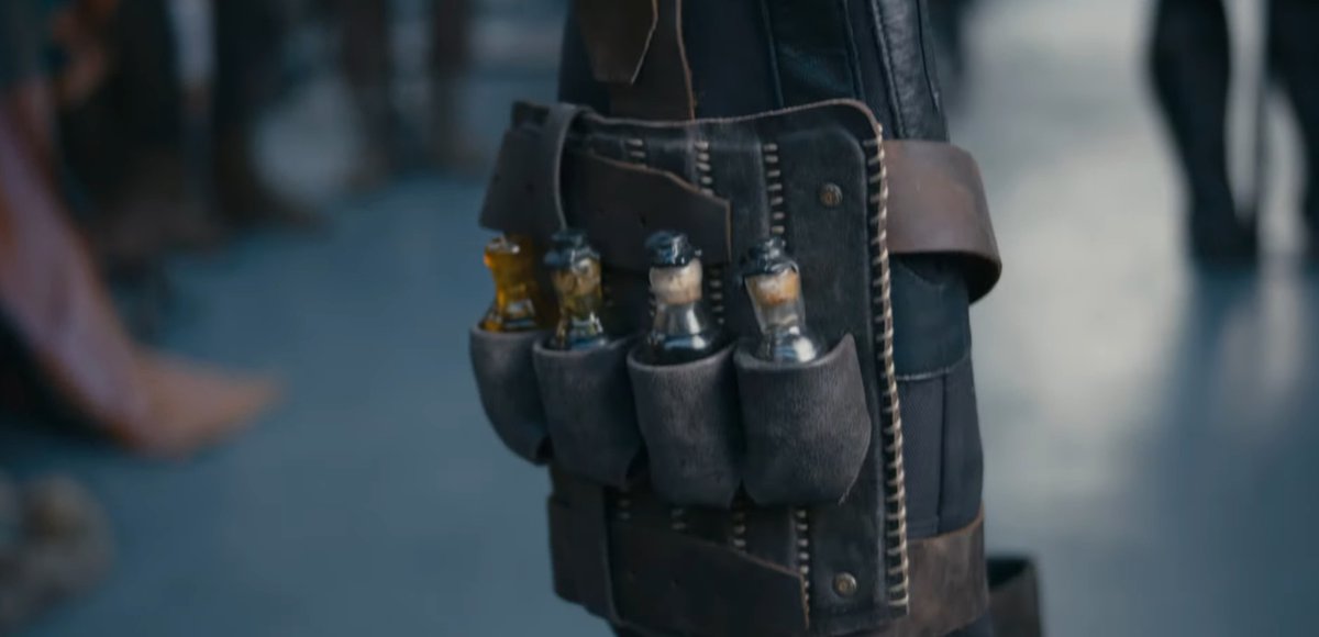 - У нового костюма есть перевязь для хранения эликсиров: она крепится на ногу, расположение выбирал Кавилл. С прошлой броней, шутил актер, бутылочки появлялись просто из ниоткуда.